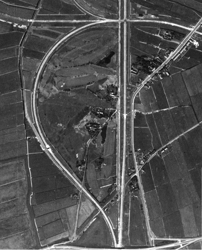 Deze foto hieronder is genomen door de RAF. Zo zag de baan eruit op 28 augustus 1945.
