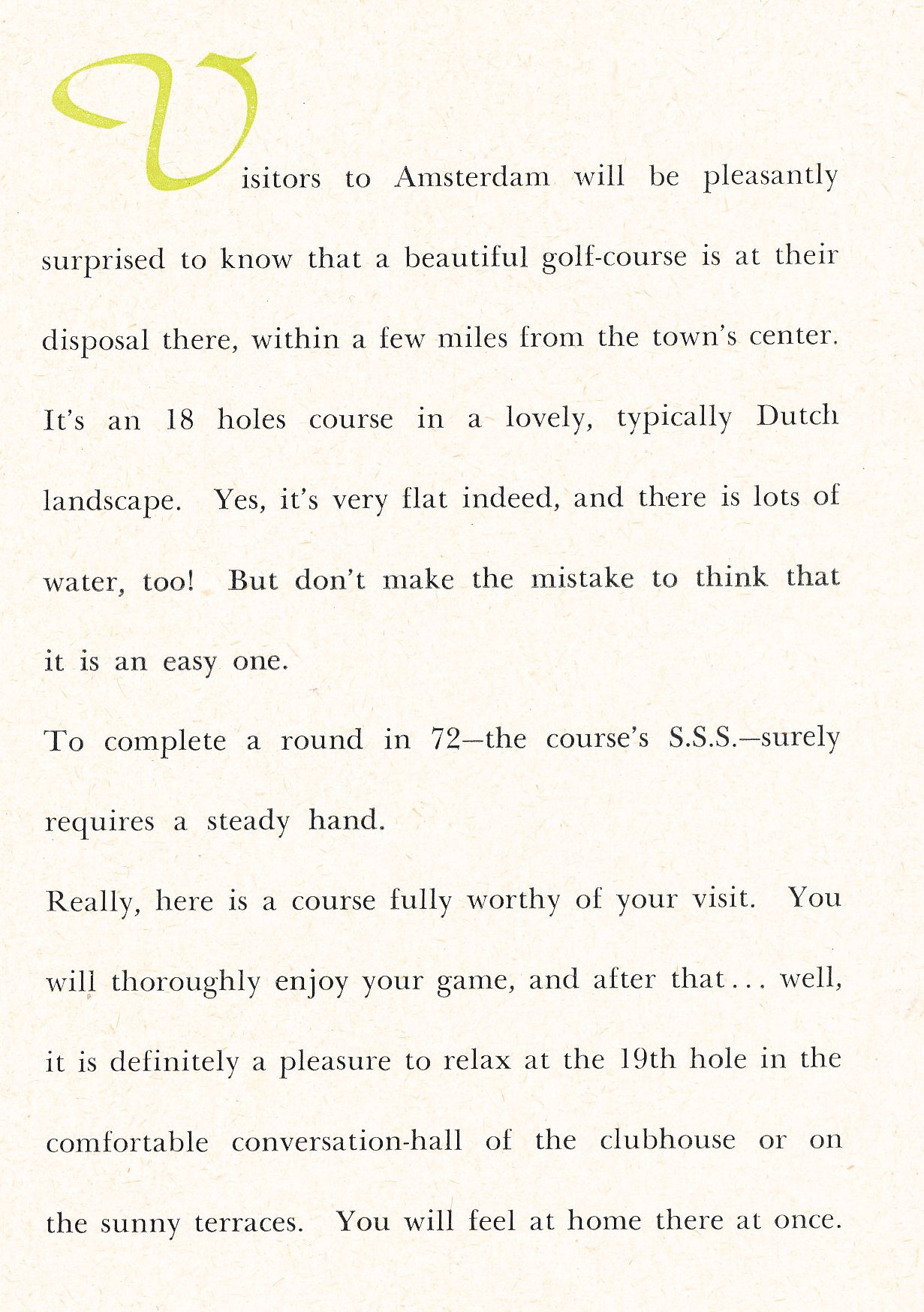 In het archief bevindt zich ook een brochure van de club. Het jaar is onbekend maar de Engelstalige folder is vermoedelijk in de jaren vijftig of zestig gemaakt. Hieronder volgen alle foto’s van de brochure in een diashow en daaronder als losse foto’s.