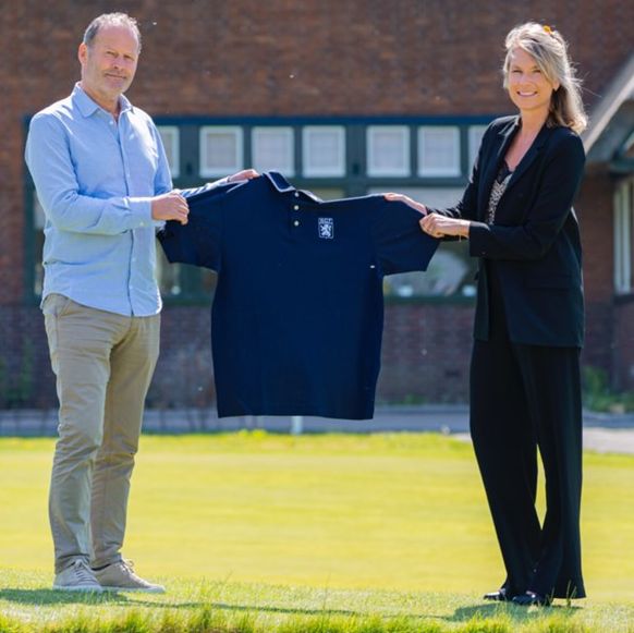 De NGF houdt een hulpactie voor clubs door onder meer polo’s te verkopen. Danny Blind gaat op AOC op de foto om te laten zien dat hij de actie ondersteunt.
